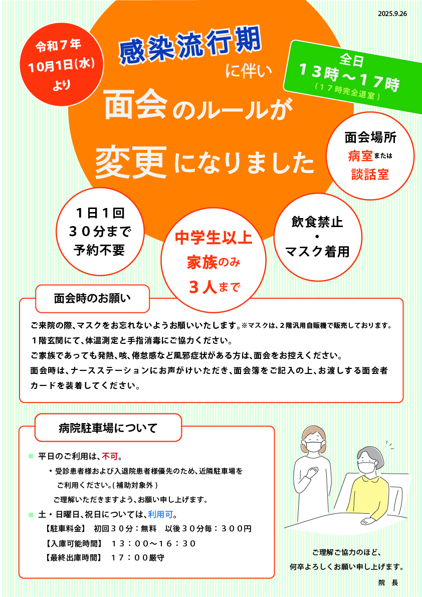 院内感染防止に、ご理解とご了承いただきますようお願い申し上げます。