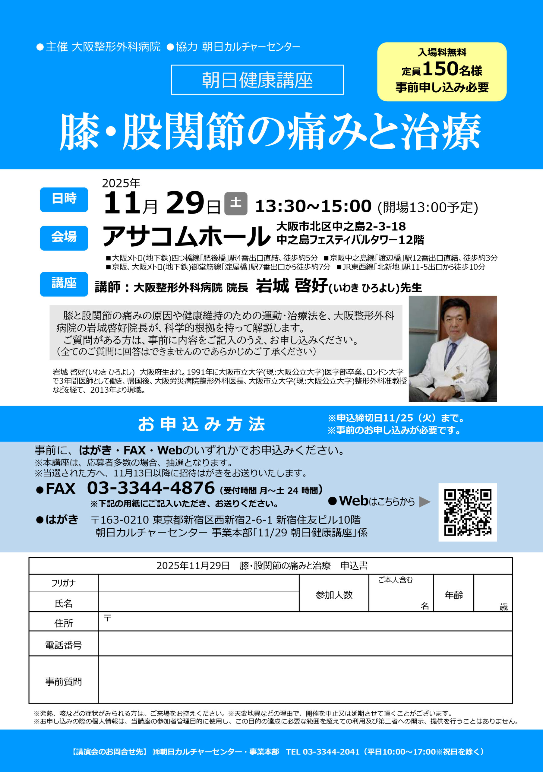 岩城院長による朝日健康講座開催のお知らせ